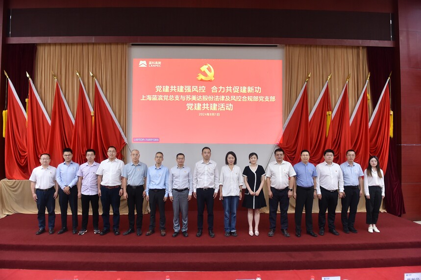 為持續提升風控合規意識和能力,賦能業務打勝仗,8月1日,藍科高新黨委上海藍濱黨總支與蘇美達股份法律及風控合規部黨支部開展共建交流活動。蘇美達黨委委員、副總經理、董秘,藍科高新黨委書記、董事長王健,蘇美達黨委委員、副總經理,機電公司黨總支書記、董事長史磊出席活動。藍科高新黨委副書記高巍主持活動。