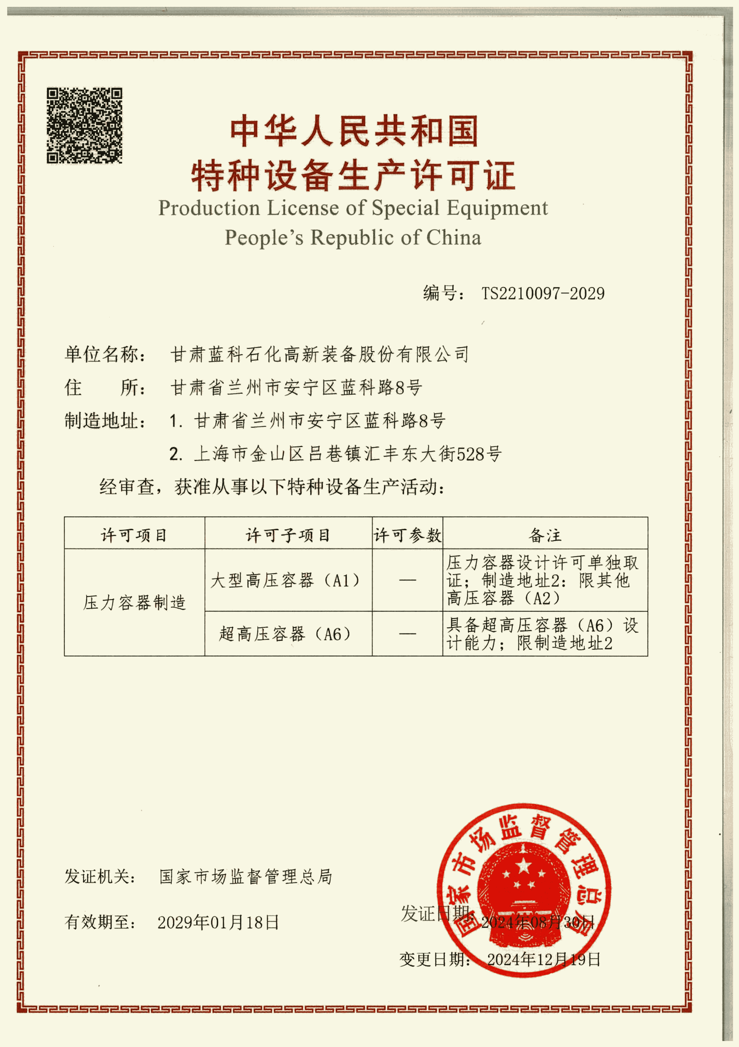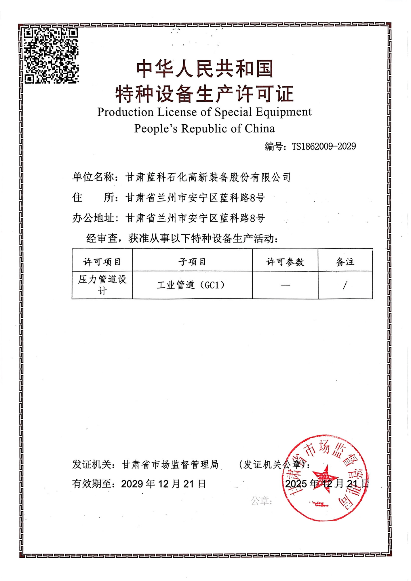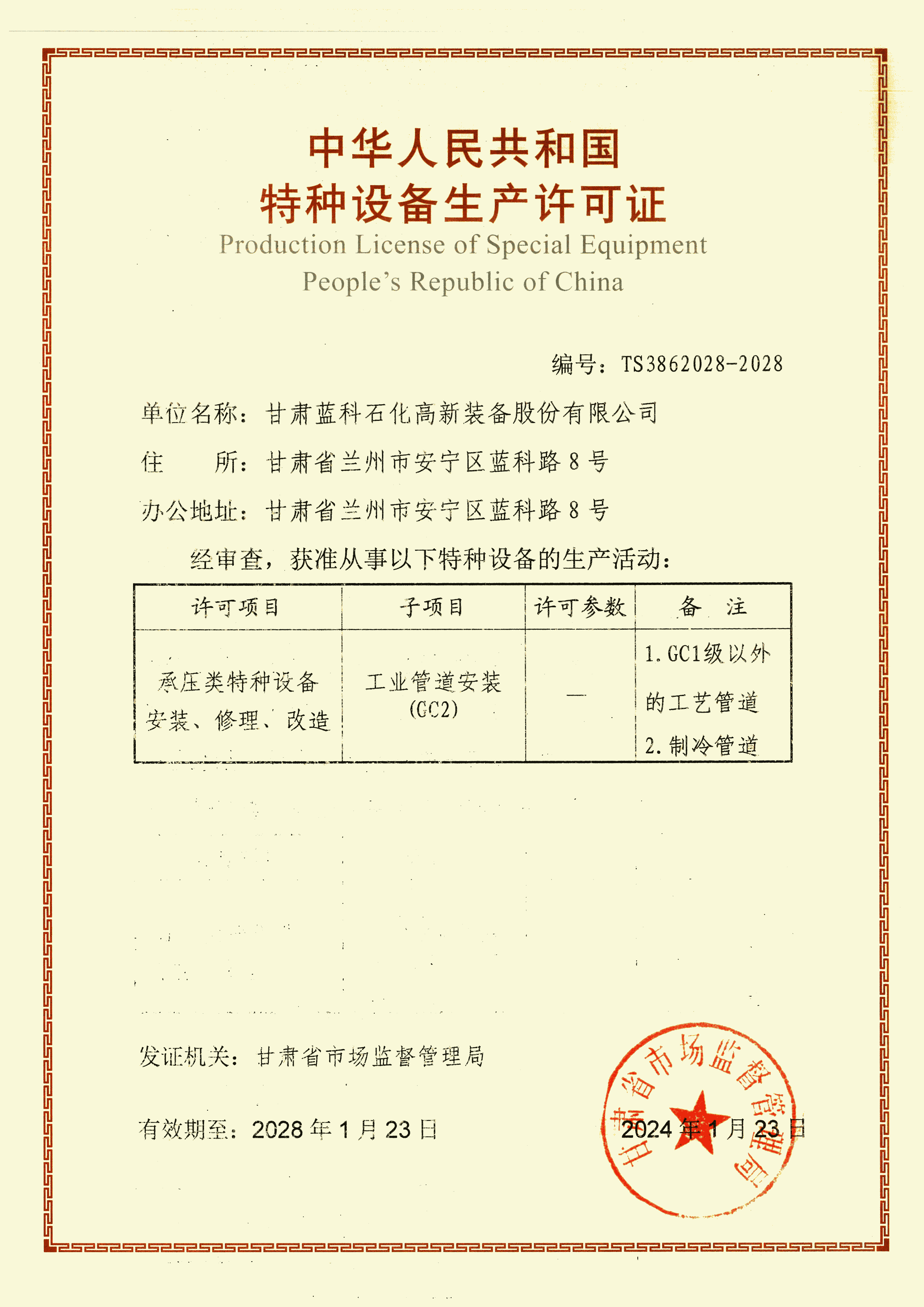 壓力管道安裝許可證