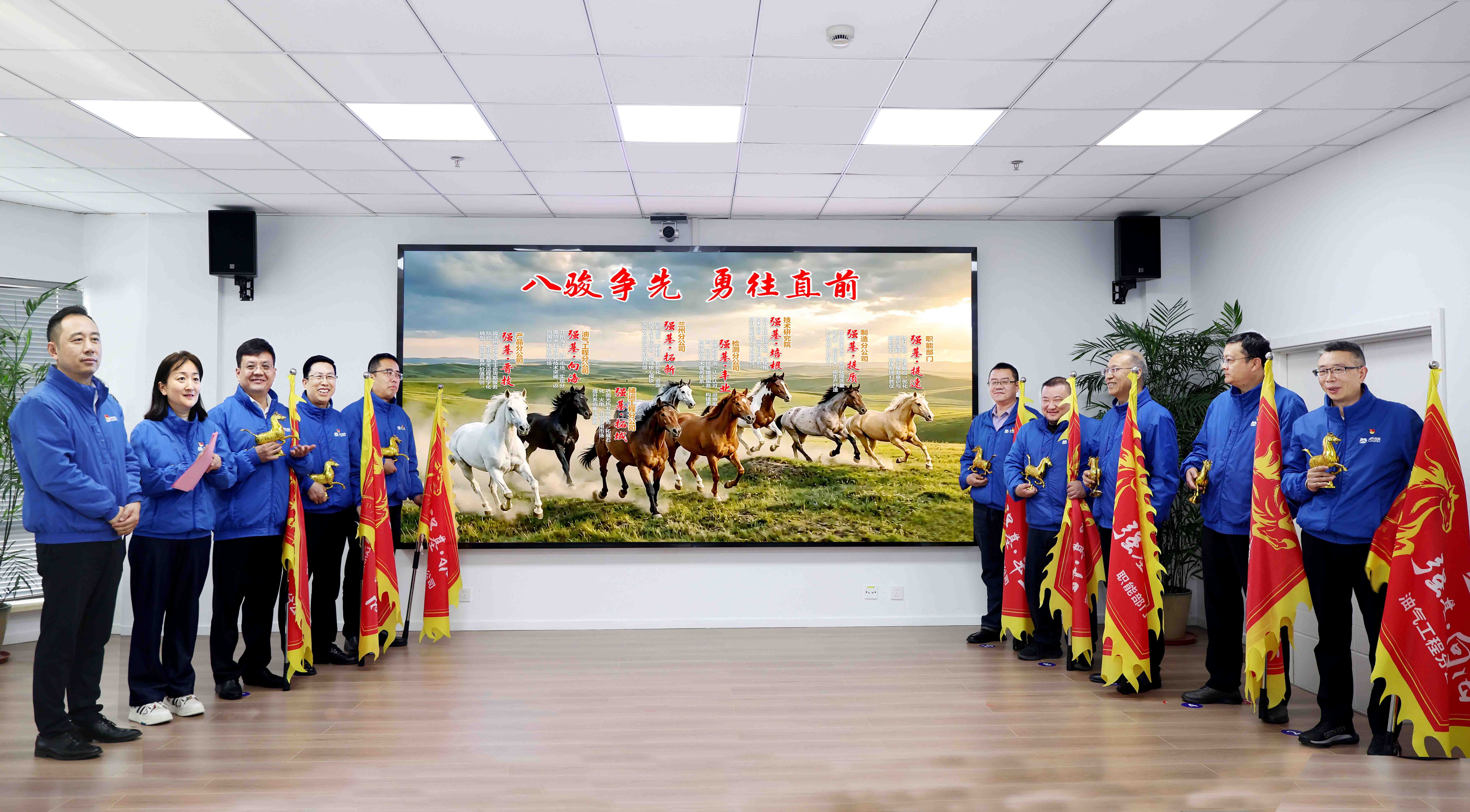 會議舉行黨建品牌推進行動“八駿爭先”出征儀式,王健為八大板塊代表贈送銅奔馬并授旗,各團隊莊嚴(yán)宣誓,彰顯奮進擔(dān)當(dāng)。